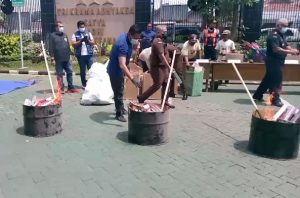 “Barang bukti yang ada kita musnahkan dengan cara dihancurkan dan dibakar, sehingga barang bukti tersebut tidak lagi bisa dimanfaatkan bahkan sampai disalahgunakan,” jelasnya.