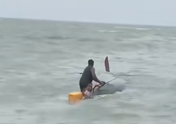 Namun apesnya saat perjalanan pulang, satu kapal pencari ikan milik Abu bersama menantunya terbalik, dan langsung mendapatkan pertolongan dari teman-teman nelayan yang lain.