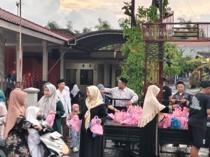 Usai berbagi takjil, acara berlanjut dengan adanya pembacaan tahlil, tausiyah keagamaan, hingga sholat Maghrib berjamaah.
