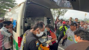 Petugas saat mengevakuasi jenazah korban