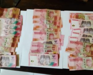 Uang sisa hasil penjualan kalung emas yang diamankan petugas